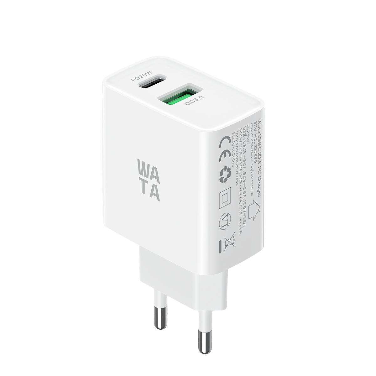 WATA Dual USB C/USB A 20W PD punjač